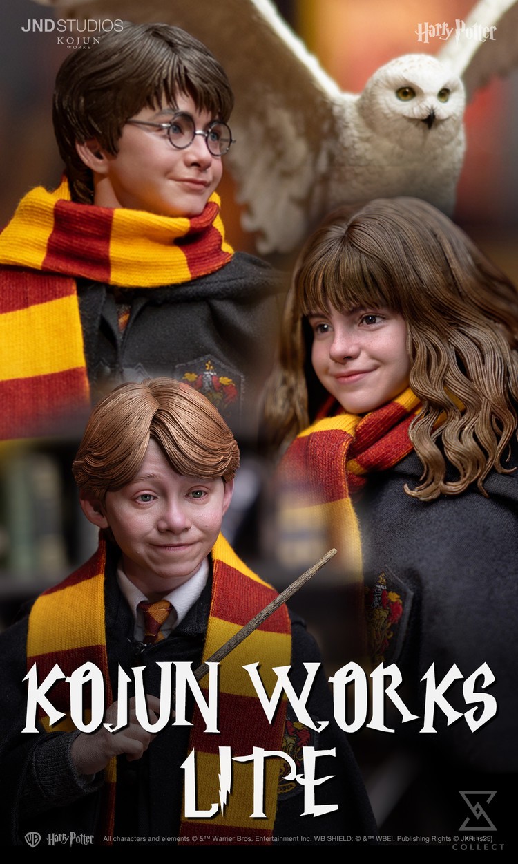 “He’ll be famous. Every child in our world will know his name.” Harry Potter, Ron Weasley, and Hermione Granger from Harry Potter and the Sorcerer’s Stone 1:6 Scale Hyperreal Movie Action Figures by JND STUDIOS KOJUN WORKS. The story of Hogwarts that we all love the most is back with JND Studios all new figure technology. Collect the most memorable appearance of Harry Potter, the iconic Quidditch Seeker, from the legendary and globally hit film series, Harry Potter, as the most adorable figure. The JND Studios KOJUN WORKS Harry Potter series will live on in us forever with incomparable quality, and every time you enjoy your collectibles, they will always welcome you.
