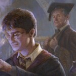 With knowing Hogwarts does not have electricity, it can be challenge how an interior classroom scene such as this is lit. Large gothic style window frames and the open passages of Hogwarts architecture to the rescue! With cool toned temperature daylight streaming in, as seen in the Harry Potter movie Half Blood Prince, plus the blue colored flames of Bunsen burners, a conscious choice was made by the artist for Harry’s potion to be a violet. The vapor’s hue adds a little warmth to the overall color scheme, while “popping out” visually as well.