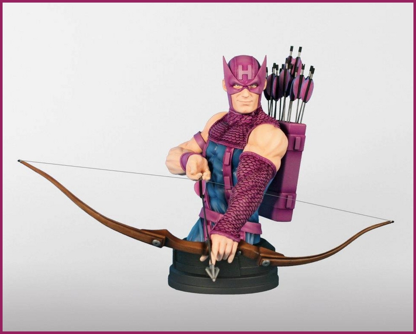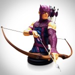 Since 1965, Marvel Comics’ Clint Barton (better known as Hawkeye) has been a mainstay of the legendary Avengers. One of the most prolific heroes of the Marvel Universe, Hawkeye is an unusual hero in that he possesses no superhuman abilities. However he has incredible natural talents for archery and hand-to-hand combat, and is devoted to keeping himself in top physical condition. The Hawkeye Mini Bust features Barton in his iconic purple and blue uniform, wielding his custom bow and a quiver full of his signature “trick” arrows. As an added bonus, collectors can choose to display Hawkeye with one of five different trick arrows – Bola, Cable, Explosive, Flare and Hunting!