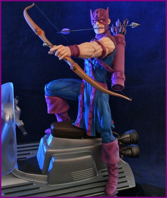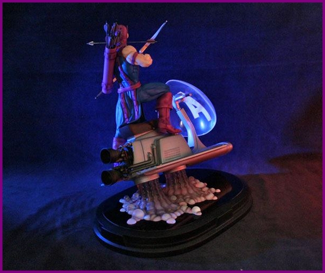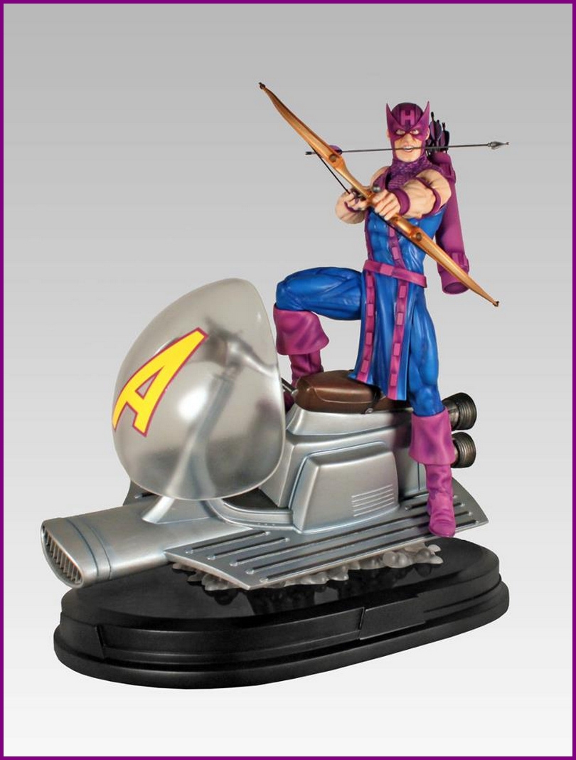 Look! Up in the sky! It’s a bird! It’s a plane! It’s… one of Earth’s Mightiest Heroes, Hawkeye! Ripped straight from the pages of The Avengers and rendered with stunning detail, Gentle Giant is proud to bring you the Hawkeye on Sky-Cycle statue! From the snowmobile-inspired form of the Sky-Cycle to the razor tip on Hawkeye’s deadly arrow, no detail has been overlooked by Gentle Giant’s team of master craftsmen in the creation of this limited edition statue.