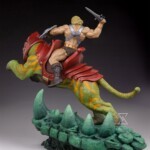 This new He-Man & Battle Cat Maquette measures roughly 30″ tall, 20″ wide, and 33″ long when fully assembled.