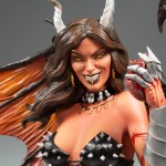 Based on Brian Pulido’s comicbook vixen and artwork by Mike Krome, Hellwitch crouches atop a pile of ash and bone clutching the heart of her last victim. Measuring 14.5” to the tip of her horns, she displays her impressive 17.5” wingspan among a highly detailed 1:5 scale form. Every detail is there, from her thigh-high boots and armored gauntlet to that come hither smile that lets you know she is up to no good.