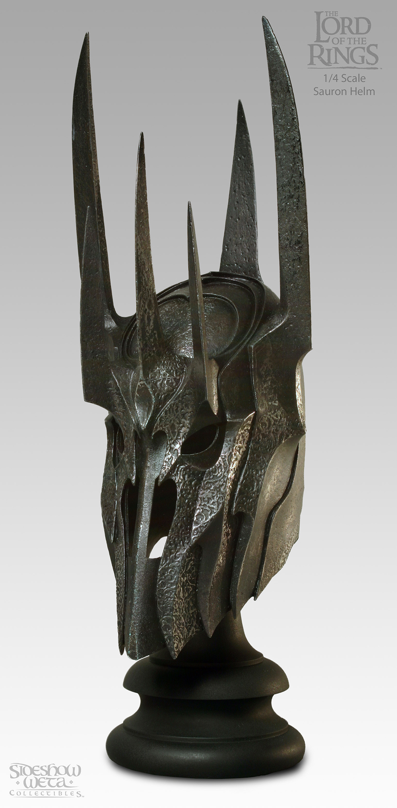 Now, Sideshow/ WETA Collectibles Workshop brings you this 1/4 scale replica of Sauron’s helmet. This menacing addition to the line of Lord of the Rings 1/4 scale helmets measures approximately 8 inches high, is made from metal and includes a display base. (from Sideshow Collectibles)