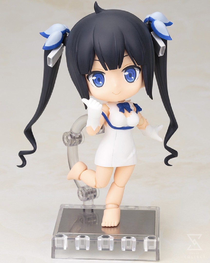 A Kotobukiya Japanese import!Joining Kotobukiya’s hit Cu-Poche figure series is the beautiful resident deity and helper of Bell Cranel in Is It Wrong To Try To Pick Up Girls In A Dungeon, Hestia! Poseable and fun, each Cu-Poche figure features multiple points of articulation and magnets in its feet for extra stability on the included base or any metal surface. The part-time food stand worker and full time goddess is captured in the Cu-Poche style as a diminutive girl dressed in an adorable white dress with white gloves, a blue sash accent and necktie, and matching blue and white hair ties. Hestia is barefooted and her long black hair hangs in twin tails, and you can customize her appearance with multiple interchangeable parts like hands in different gestures and faceplates with different expressions including winking, smiling, and more! Hestia stands just under 4 ½ inches tall and has multiple points of articulation for great posing and display options. Bring Hestia home to be your resident deity!