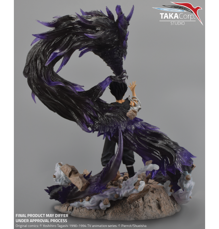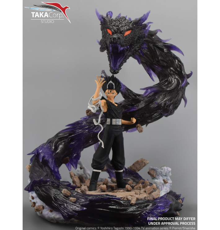 Hiei, a member of the iconic Yu Yu Hakusho quartet, arrives at Taka’s house in the form of a statue, using his most powerful attack “Dragon of Darkness Flame”.
