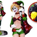 Harley’s back! Fresh off her best-selling Bombshell makeover, everyone’s favorite deranged darling rings in the holiday season with a batty bag of gifts in this variant. The Batman DC Comics Bombshells Holiday Harley Quinn Statue measures approximately 10-inches tall. Harley Quinn is dressed in a festive red and green outfit to ring in the holidays! In Harley’s gift bag of goodies is part of Batman’s outfit.