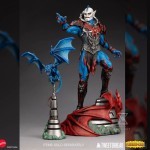 Hordak’s Minion maquette measures roughly 13.5” tall, 8” wide, and 6” deep when fully assembled. This polyresin statue comes perched atop the horrific Fright-Zone themed base that matches the one that came with the previously released Hordak maquette.