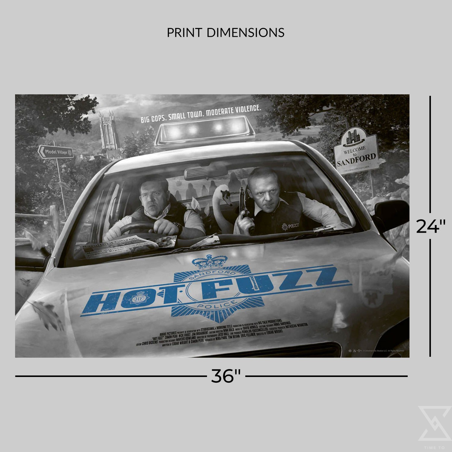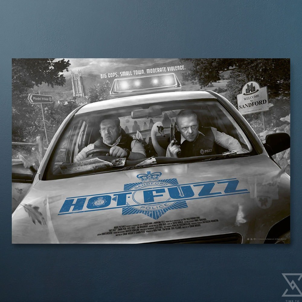 Join these big cops in a small town and bring home the Hot Fuzz Foil Variant Movie Poster by Kevin M. Wilson today!