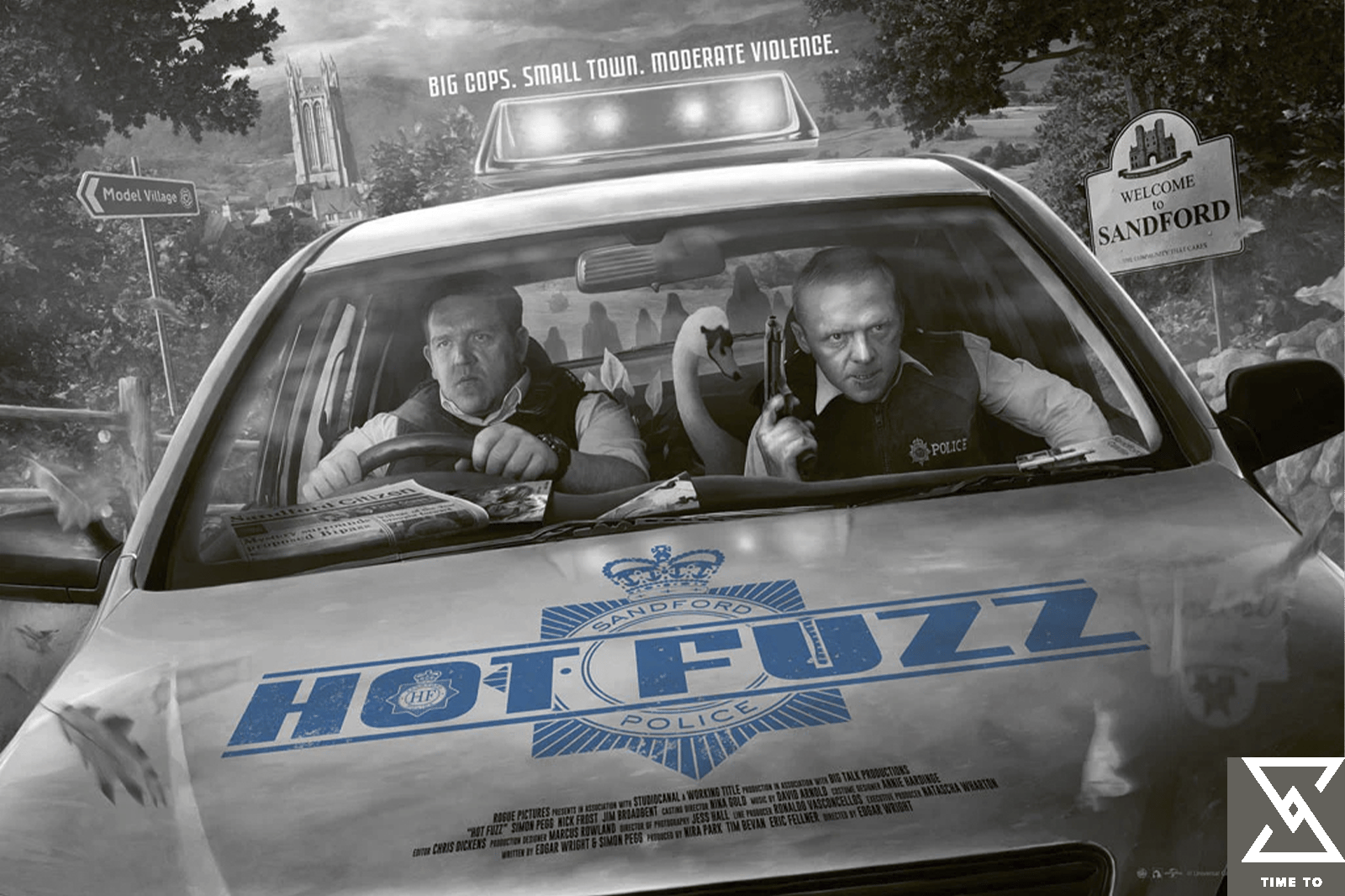 Sideshow and Vice Press proudly present the Hot Fuzz Foil Variant Movie Poster by artist Kevin M. Wilson!