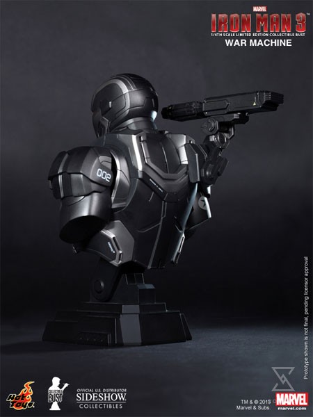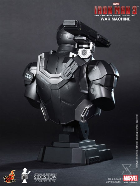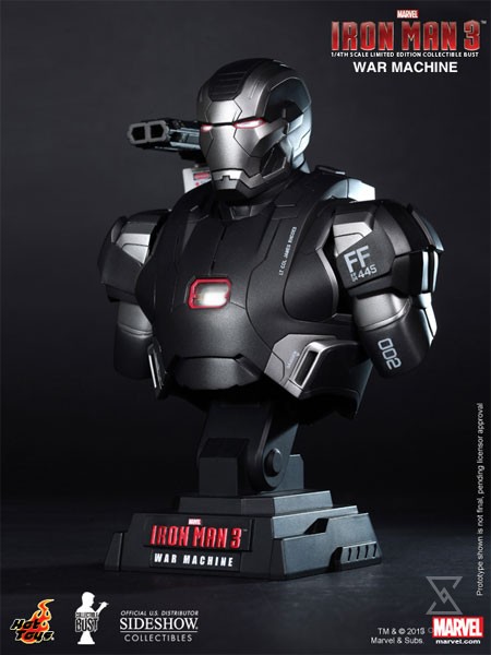 Sideshow Collectibles and Hot Toys are proud to present the War Machine Limited Edition Quarter Scale Collectible Bust from one of the most anticipated blockbusters of the year, Iron Man 3. It is specially produced based on the image of War Machine; the detailed sculpture highlights the light-up functions and rotatable shoulder-mounted gatling gun.