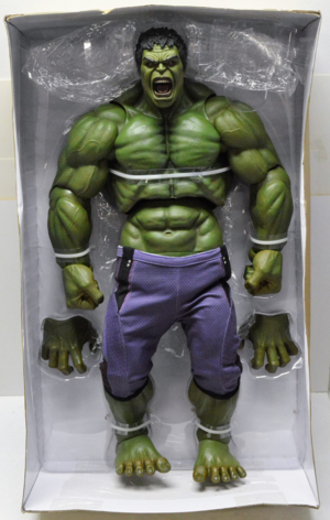 Excluded from Coupons and Discounts Introducing our biggest action figure ever! Based on his appearance in Marvels Avengers: Age of Ultron, the Hulk 1/4 scale figure measures a mind-boggling two feet tall. This stunning rendition of Bruce Banner’s gamma-irradiated alter ego has over 25 points of articulation for smash-ready poses. Hulk comes with 2 sets of interchangeable hands and is lovingly detailed to be entirely authentic to the movie.
