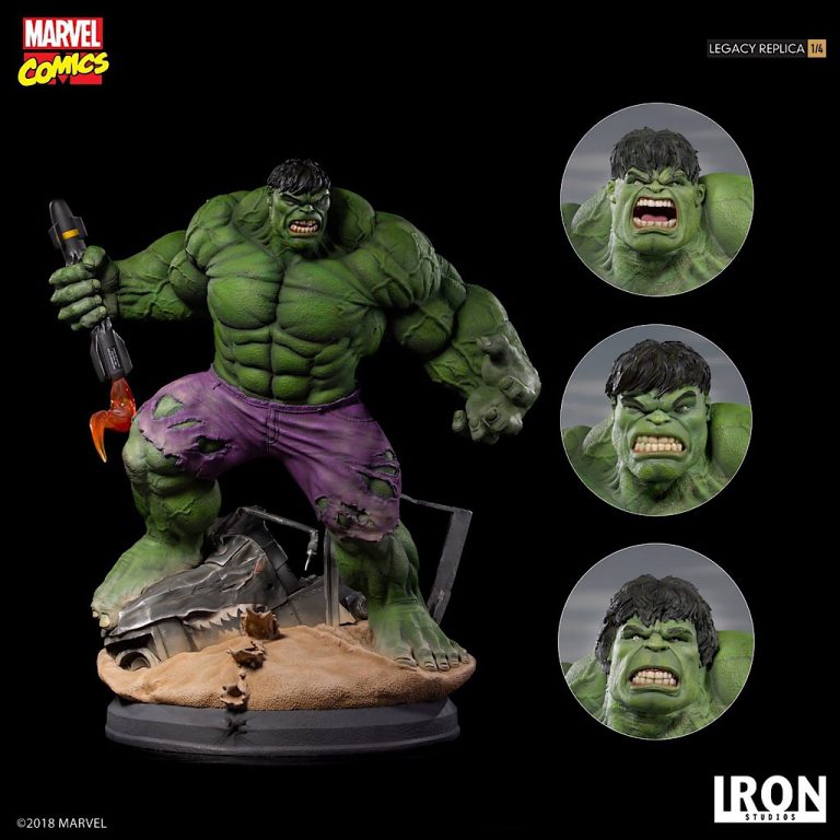 Iron Studios are proud to announce the latest from the Legacy Replica 1:4 Scale line – Hulk! Based on the likeness of Hulk from the comics, this polystone statue includes four interchangeable heads and includes a base featuring a destroyed helicopter!