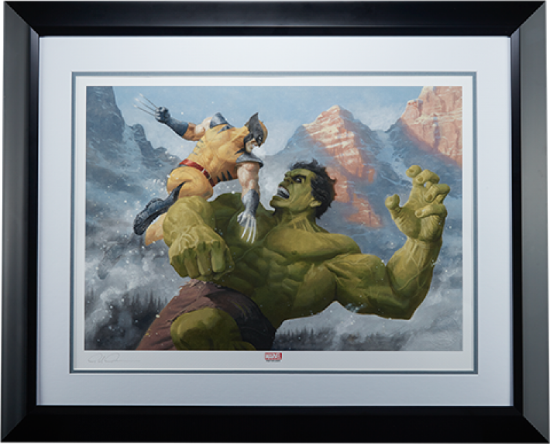 PITTING TWO OF MARVEL’S MIGHTIEST HEROES HEAD-TO-HEAD, SIDESHOW IS PROUD TO PRESENT THE HULK VS. WOLVERINE PREMIUM ART PRINT BY PAOLO RIVERA. CAUGHT ON A DESTRUCTIVE RAMPAGE THROUGH THE CANADIAN WILDERNESS, THERE’S ONLY ONE MUTANT WHO CAN STOP THE HULK! HE’S THE BEST AT WHAT HE DOES, BUT WHAT HE DOES ISN’T VERY NICE… SNIKT!