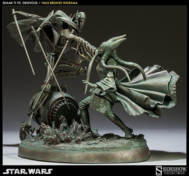 Sideshow Collectibles is proud to present the ‘Hunt for the Jedi’ – Shaak Ti VS General Grievous Faux Bronze Diorama, depicting their near-deadly clash at the Battle of Hypori. The detailed sculpture captures the intensity of the ongoing battle between the Jedi and the Dark Side. Presented in approximately 1:8 scale, each diorama is individually painted and finished to exacting standards, each with its own unique quality and detail that is the trademark of a handcrafted Sideshow Collectibles Diorama. This stunning piece will make an outstanding addition to any Star Wars display!