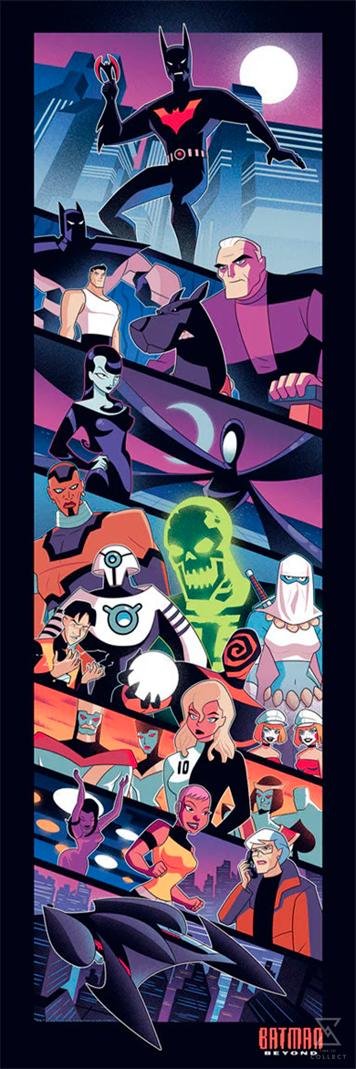 Set foot in a future Gotham with heroes, villains, and a new Batman in this incredible DC Comics print inspired by the animated series Batman Beyond. Each fine art lithograph print is hand-numbered from a limited edition of 250 pieces, making it the perfect new addition to your superhero art collection.