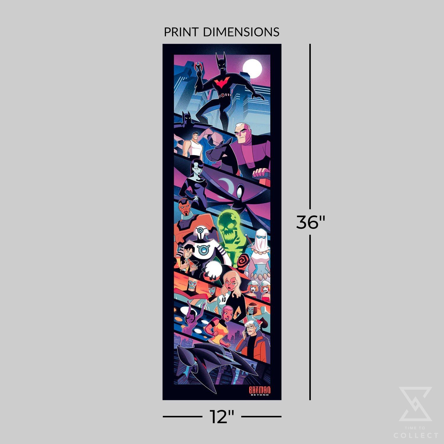 Set foot in a future Gotham with heroes, villains, and a new Batman in this incredible DC Comics print inspired by the animated series Batman Beyond. Each fine art lithograph print is hand-numbered from a limited edition of 250 pieces, making it the perfect new addition to your superhero art collection.