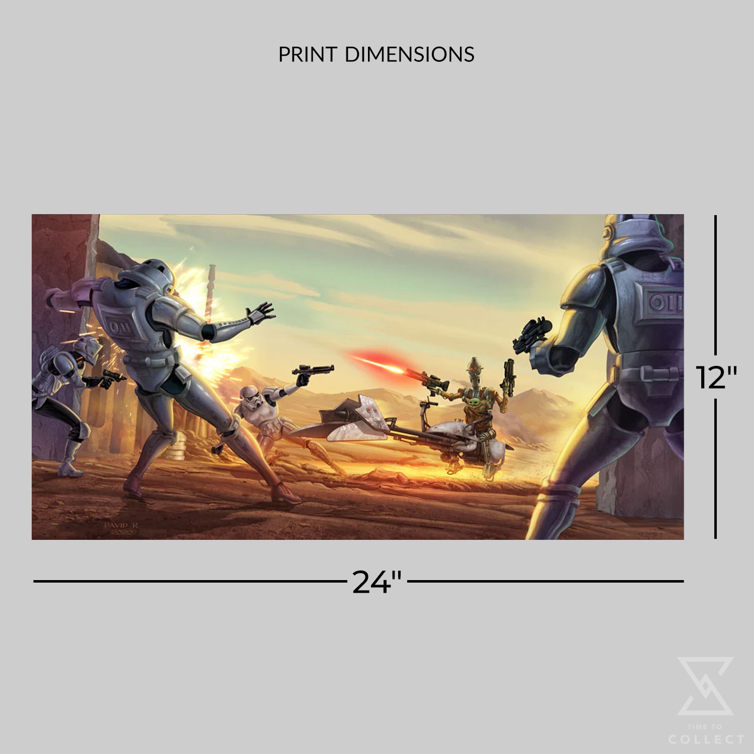 Witness the epic takedown as IG-11 protects Grogu from the Troopers hunting him in this thrilling Star Wars artwork inspired by Star Wars: The Mandalorian. Each fine art lithograph print is hand-numbered from a limited edition of 250 pieces and comes with a Certificate of Authenticity.