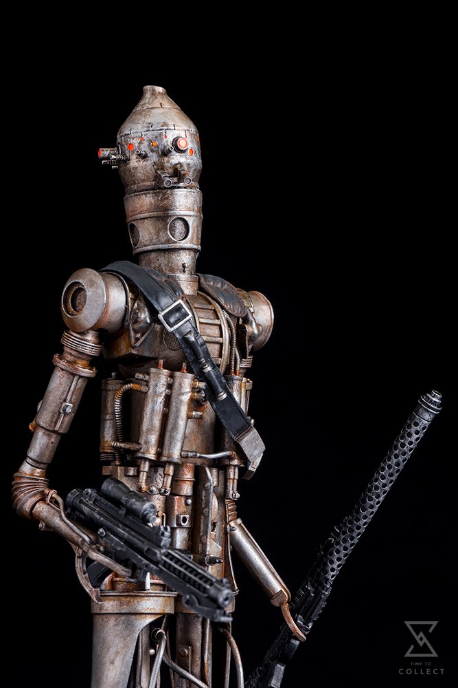 ARTFX+ Statues are fun-to-assemble pre-painted snap-fit kits that can be put together easily in seconds without glue or modeling skill. The towering IG-88 stands over 8 inches tall (1/10th scale), and magnets in its feet provide perfect stability on the included metal display base. Continue your ARTFX+ Bounty Hunter series with this killer droid and collect them all (4-LOM, Dengar, IG-88, Bossk, and Zuckuss) to assemble a complete statue of Boba Fett with included bonus parts!