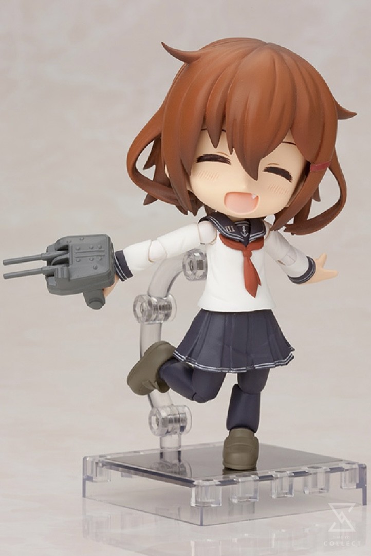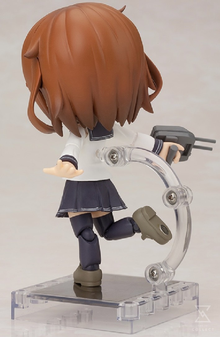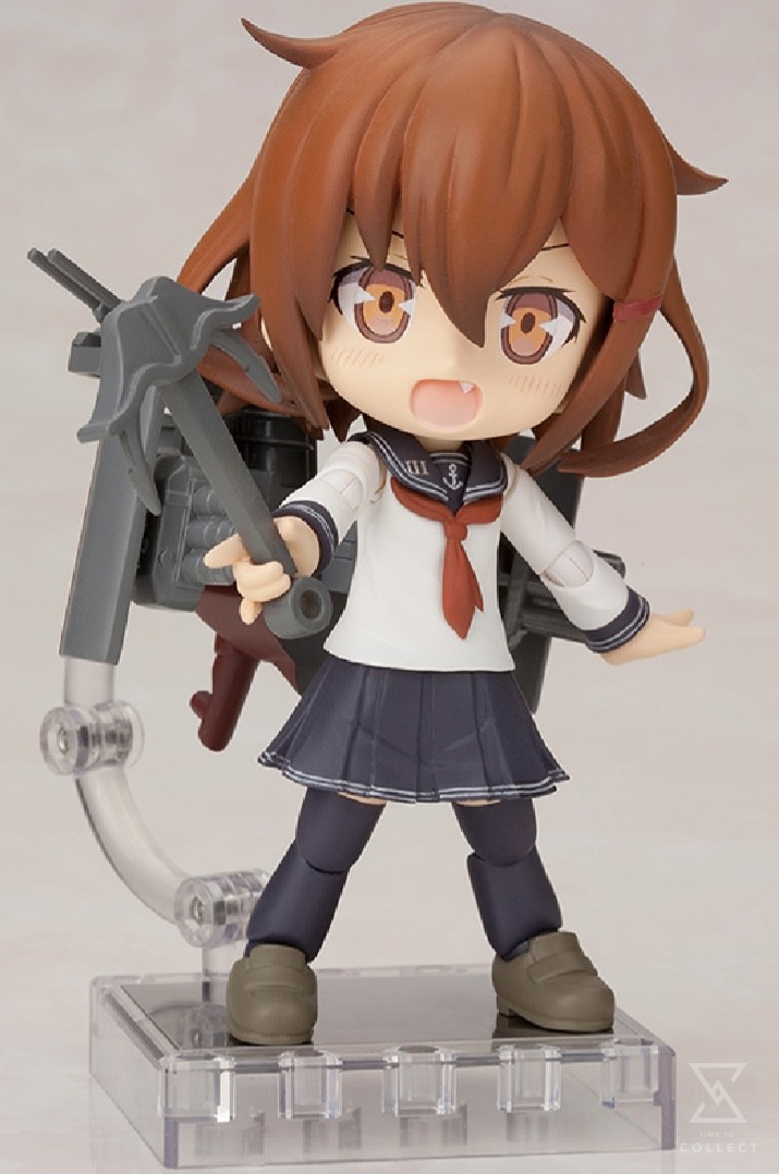 A Kotobukiya Japanese import! For the next member of the lineup of Cu-Poche figures we head out to sea with the ultra-popular Kantai Collection, originally an online card game that’s exploded into lots of other media. The debut figure is one of the most popular characters from the game and its artwork, Ikazuchi! Poseable and fun, each Cu-Poche figure features multiple points of articulation and magnets in its feet for extra stability on the included base. Personifying the famous Japanese destroyer, Ikazuchi (“Thunder”) appears here in an adorable tiny version dressed in a traditional sailor outfit with white shirt, blue skirt and tights, brown shoes, and red tie. The destroyer girl comes with an awesome array of interchangeable parts and accessories perfect for the character including a backpack resembling part of the ship, gun turrets she can hold, an anchor, and even different facial expressions capturing her moods! Ikazuchi stands just under 4 ½ inches tall and has multiple points of articulation for great posing and display options. This fun little destroyer is cute and portable whether she patrols your desk or display shelf!