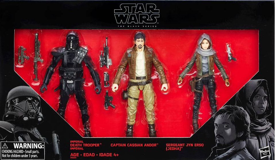 Star Wars: Rogue One is full of exciting characters and even more exciting battles! Imagine favorite characters from Star Wars: Rogue One embarking on exciting adventures with this Black Series Figure 3-pack featuring Captain Cassian Andor, Jyn Erso (Jedha), and an Imperial Death Trooper figure.