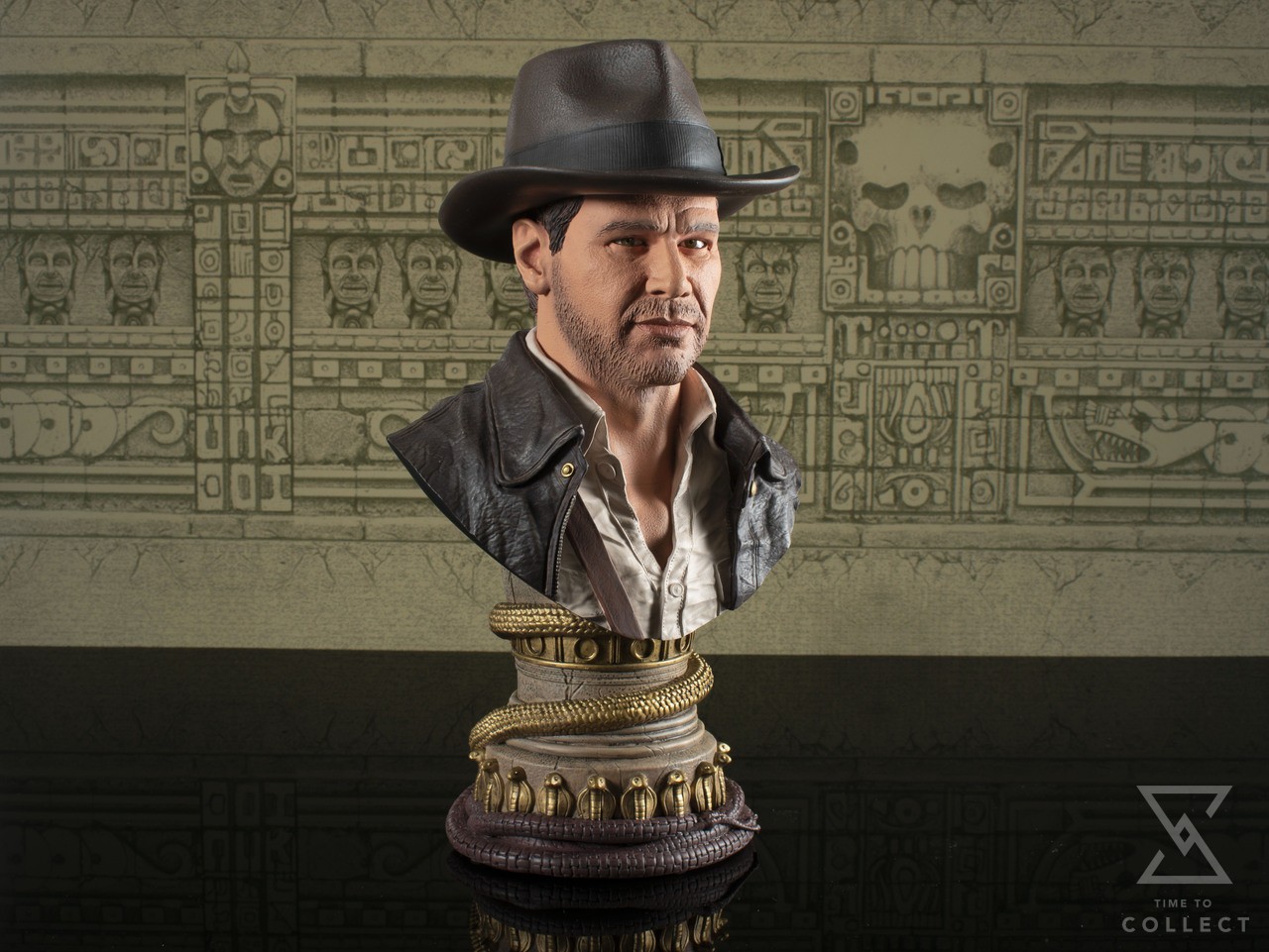 Call him Doctor Jones! Dr. Henry Jones, Jr. wears his iconic hat and leather jacket in this 1/2 scale resin bust. Measuring approximately 10 inches tall atop a golden pillar with a coiled whip at its base, this detailed portrait is limited to only 1000 pieces, and comes packaged in a full-color box with a numbered certificate of authenticity.