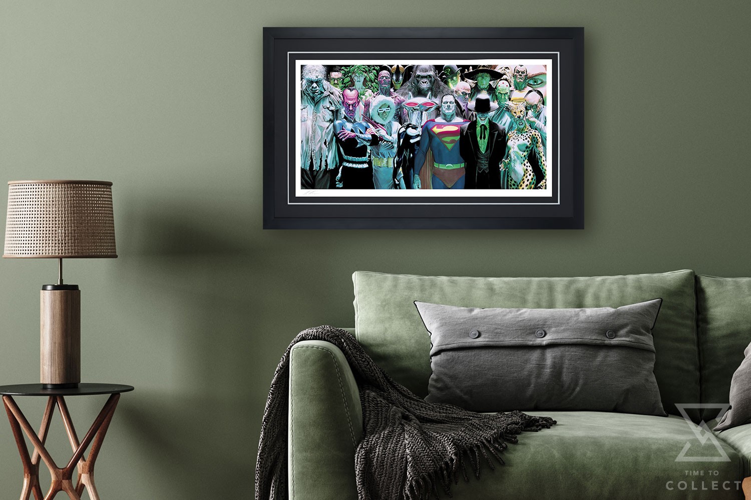 This super hero wall art has been specially reproduced as an exclusive release for New York Comic Con 2022. Each Infinitely Evil Fine Art Lithograph is hand signed by Alex Ross and includes a Certificate of Authenticity as part of the limited edition of only 295 pieces. Measuring 38” x 21” unframed or 42” x 26” in a custom framed presentation, this epic luxury lithograph is a must-have centerpiece for DC Comics collectors of any generation.