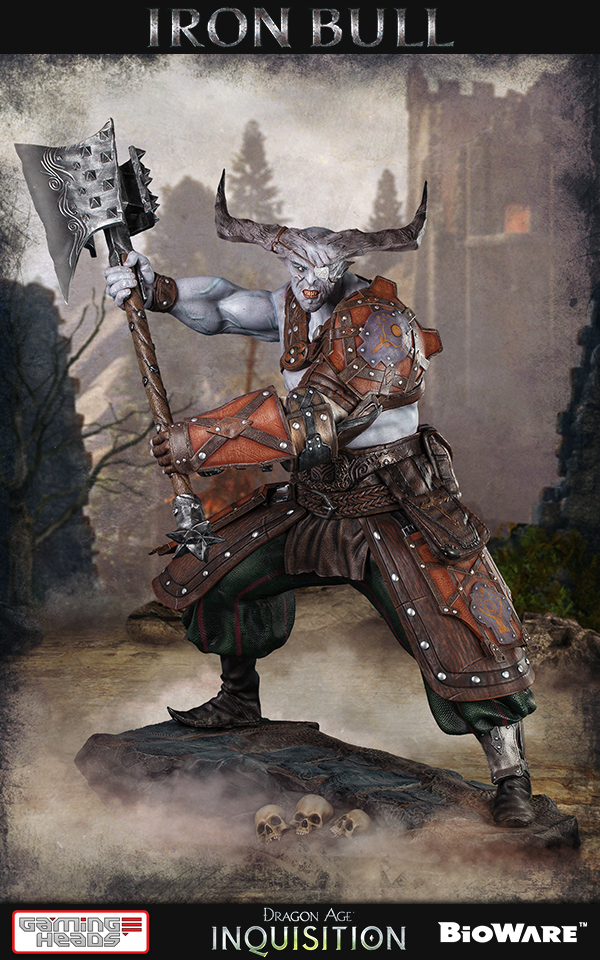 The Iron Bull is a massive engine of destruction. He stands tall and fearless in the face of monstrous creatures. With a firm stance, a study grip and his trusty greataxe, he makes sure that he is standing tall at the end of the fight. The Iron Bull is a force to be reckoned with! Gaming Heads is proud to present the Dragon Age™: Inquisition – Iron Bull 1/4th statue, standing about 22.5 inches, crafted in polystone resin and painted by artisans to capture him in all of his awesome glory.