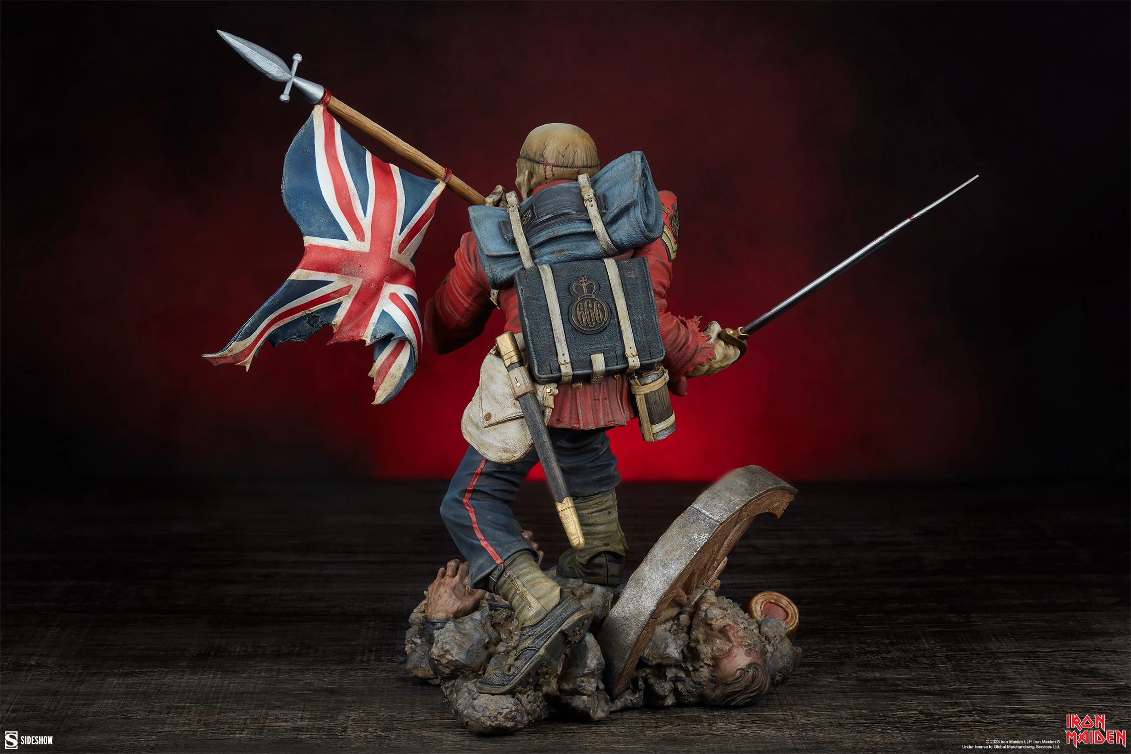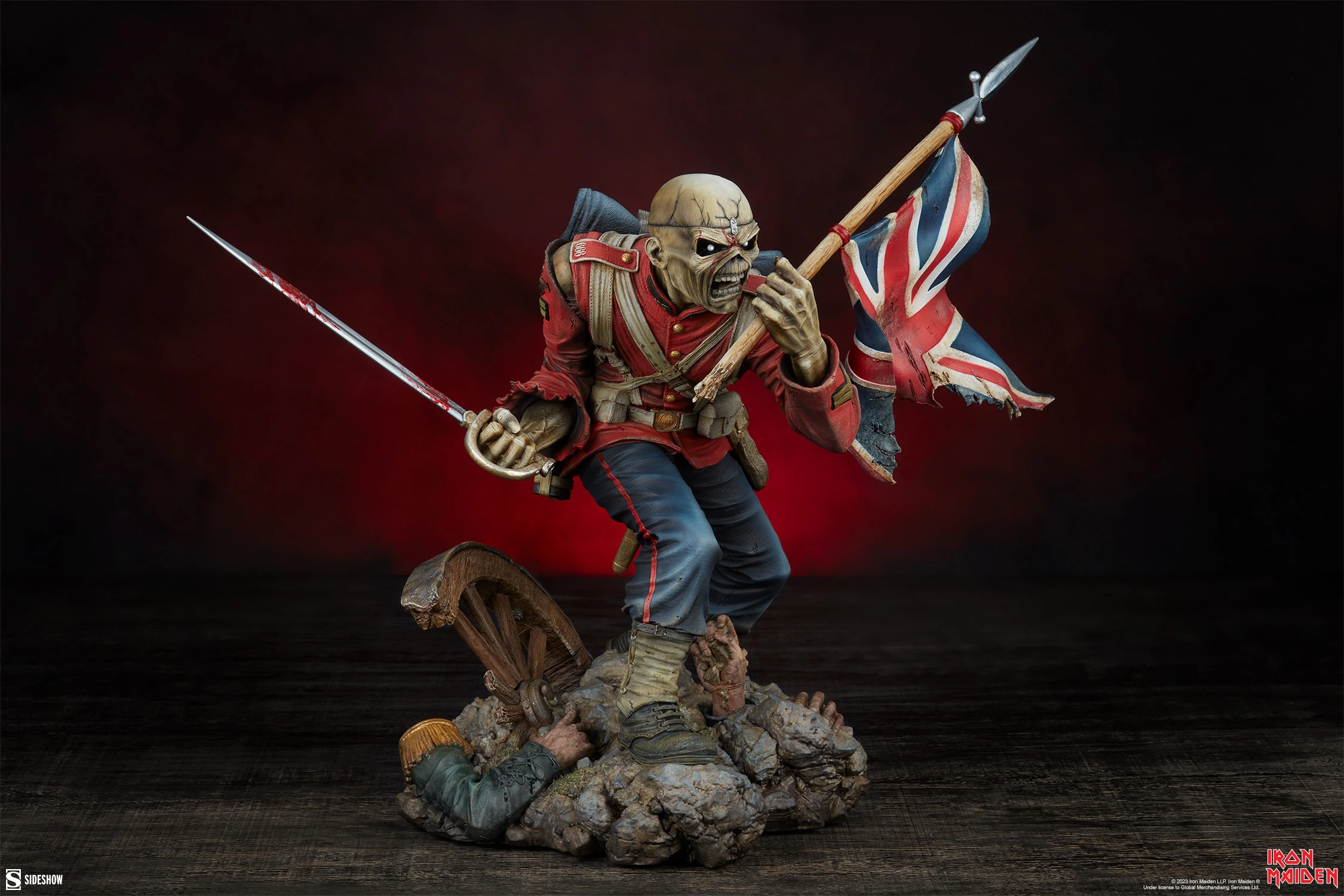 The Iron Maiden: The Trooper Eddie Premium Format Figure takes the incomparable, iconic artwork from Iron Maiden’s 1983 single “The Trooper” and turns it into a fully realized, three-dimensional statue for Iron Maiden fans featuring one of the most iconic mascots in all of music. On this battlefield, no one wins — Eddie measures 19” tall and 18” wide dressed in wartime regalia, clutching a bloodied saber in one hand and a tattered Union Jack in the other. He races forward across a battlefield base littered with fallen comrades, a broken cannon wheel, and the promise of certain death.