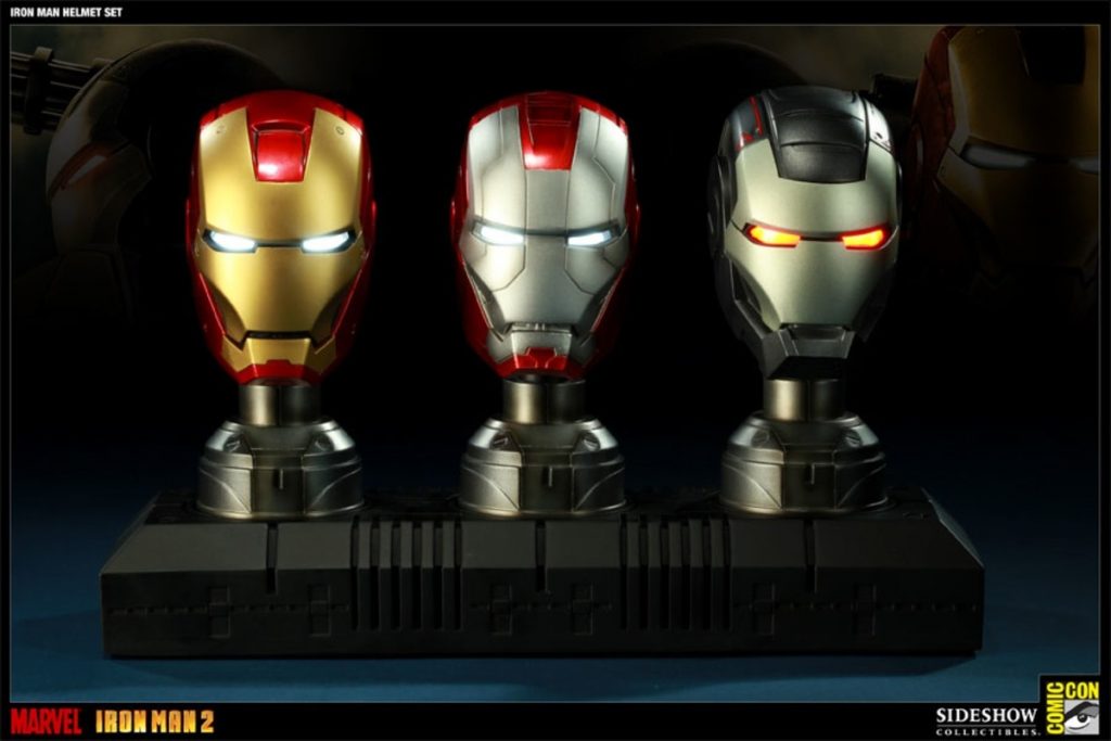 Sideshow Collectibles and Marvel Comics are proud to bring you the Iron Man Helmet Set as a 2011 San Diego Comic-Con exclusive. Crafted in 1:3 scale and including Mark V, Mark VI, and War Machine with LED light-up features, each helmet set is individually painted and finished, each with its own unique quality and detail that is the trademark of a handcrafted Sideshow Collectibles product. The Iron Man Helmet Set is the perfect addition to any Marvel or Iron Man display.