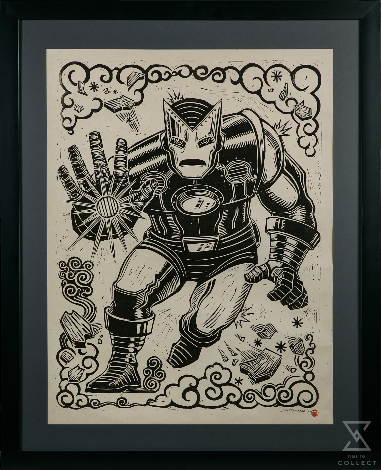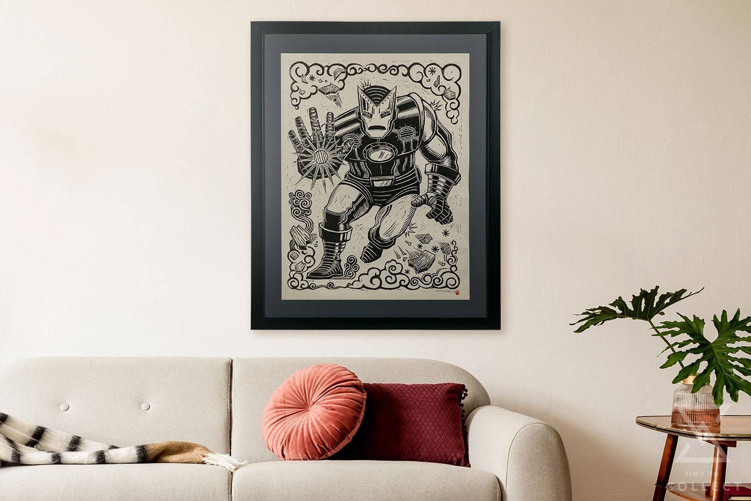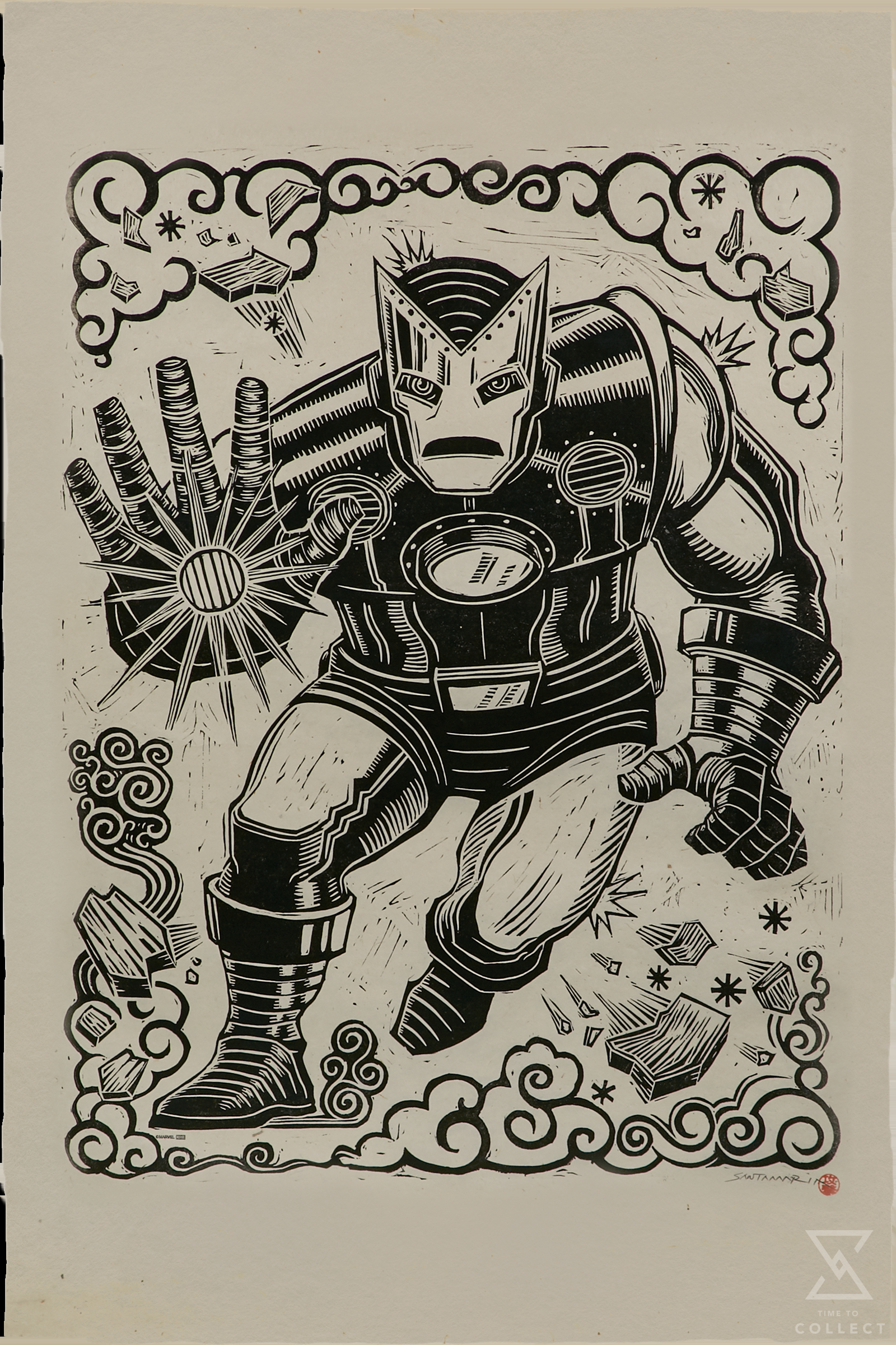 Tinker with your collection like a true futurist and bring home the Iron Man Linocut on Lokta Paper by Peter Santa-Maria today!