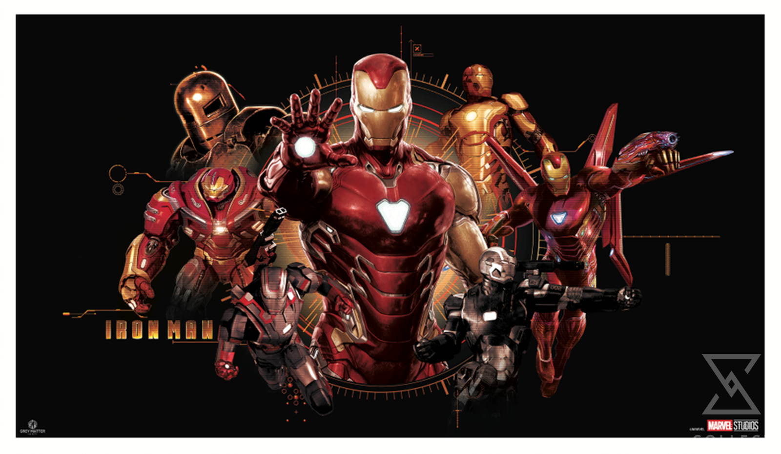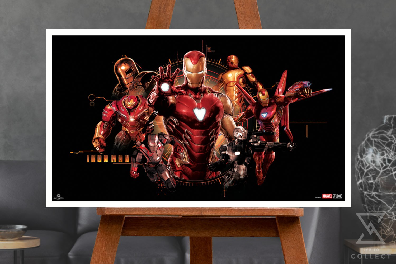 Sideshow and Grey Matter Art are thrilled to present the Iron Man Retrospective Fine Art Print! Presenting a magnificent collection of Iron Man suits in a beautiful, unmistakable Iron Man color design, this art would make an amazing addition to any Marvel Fine Art gallery!