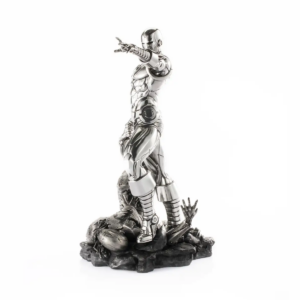 Royal Selangor’s 1/6 scale replica reproduces every detail of XM’s impressive original. A polished pewter Iron Man, in his classic Bronze Age suit, stands victorious over the mangled remains of Ultron’s robotic horde, sculpted in bonded porcelain.