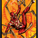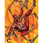 Caught in the web of conflict, Peter Parker is pulled in all directions! Initially swayed to side with Iron Man in the super hero Civil War, Spider-Man gets a red and gold upgrade to his look. This tribute to an iconic super-suit features detailed rendering on the metallic costume elements and a warm yellow and orange background of mechanical gears. With vibrant repulsors, armored arachnid arms, and his heroic can-do attitude, Iron Spider is ready to face threats in the friendly neighborhood and beyond.