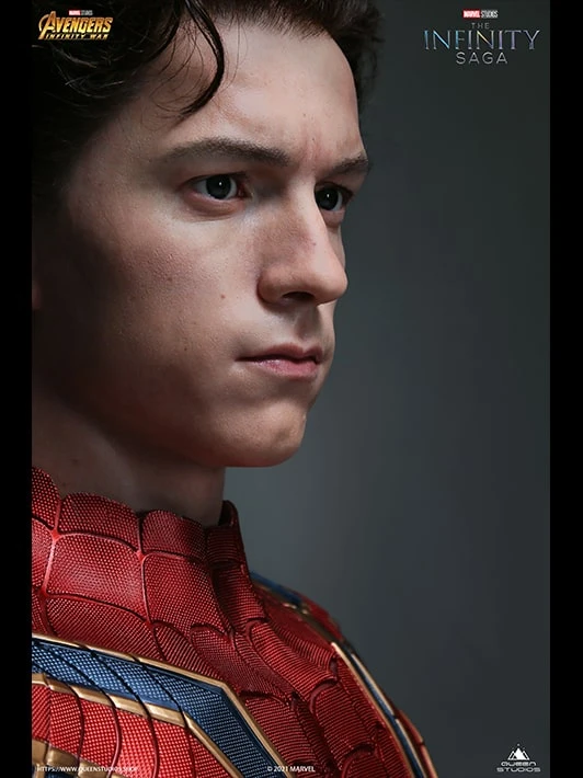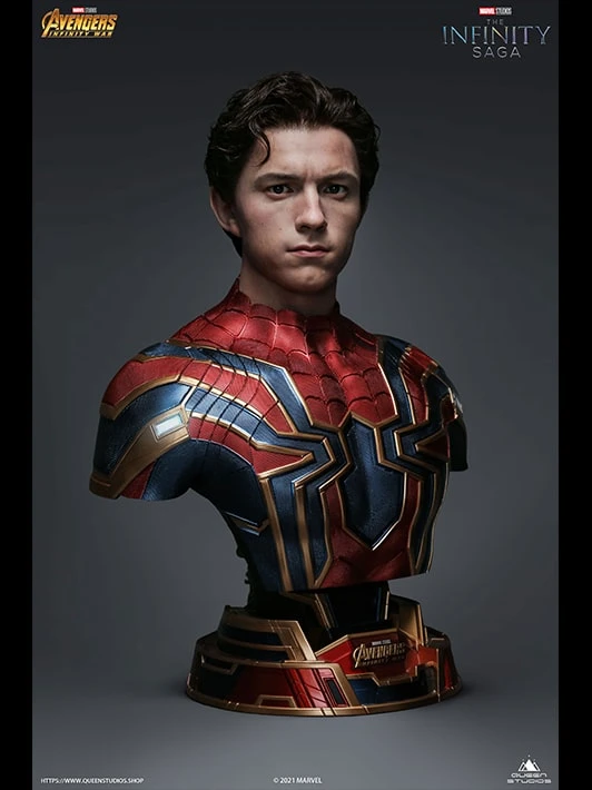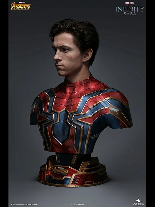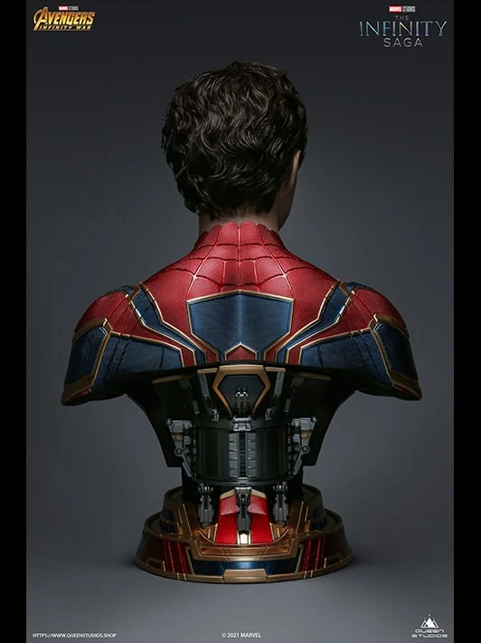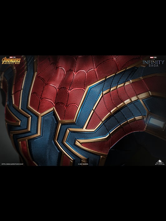 - A: Artificial Hair / B: Hyper-real Silicone Skin / C: Glass Eyes / D: Polystone Iron Spider Suit