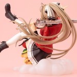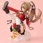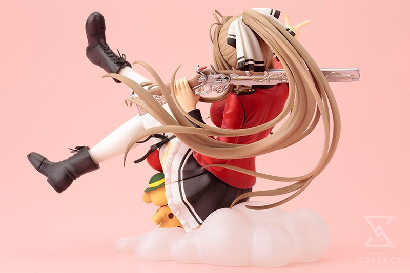 A Kotobukiya Japanese import! Based on the Japanese light novel series by Shoji Gatoh and Yuka Nakajima, the anime series Amagi Brilliant Park tells the story of a magical amusement park that’s secretly a life support system for survivors of another realm. Now the interesting characters of the park are coming to Kotobukiya’s Ani*Statue collection with the royal guard and manager Isuzu Sento! Taking a moment to herself from threatening workers at the park, the Maple Land guard relaxes by reclining on a cloud, leaning back with her feet up in the air. Isuzu wears her distinctive uniform with a red and black jacket, black skirt with white frilly hem, white stockings, and short black boots. Her outfit is further accessorized by a black and white hair tie, black garters on her stockings, and intricate gold braids and ties on her shoulder and chest. Her workers better watch out as the boss makes a shooting gesture with one hand while the other holds her magical muzzle loader over her shoulder! The beautiful Isuzu is fantastically detailed with the decoration on her firearm, clothing elements, long hair, and a smiling face, and there’s even a tiny Moffle fairy holding a red balloon sitting with her. Sculpted by Ryo Hashimoto, the Amagi Brilliant Park manager is nearly 5 inches tall (1/8 scale) sitting on her puffy cloud-shaped display base. Keep the other statues in your collection in line with the beautiful and eye-catching Isuzu Sento sitting on your shelf!