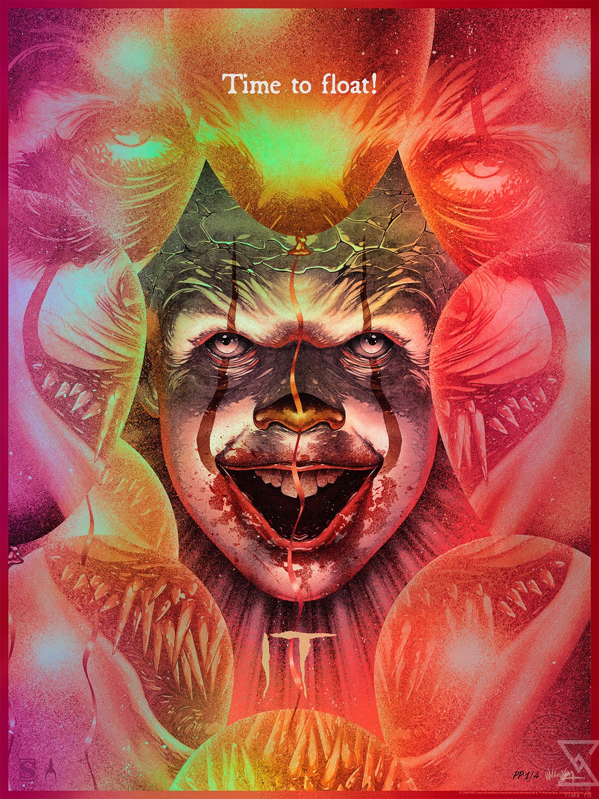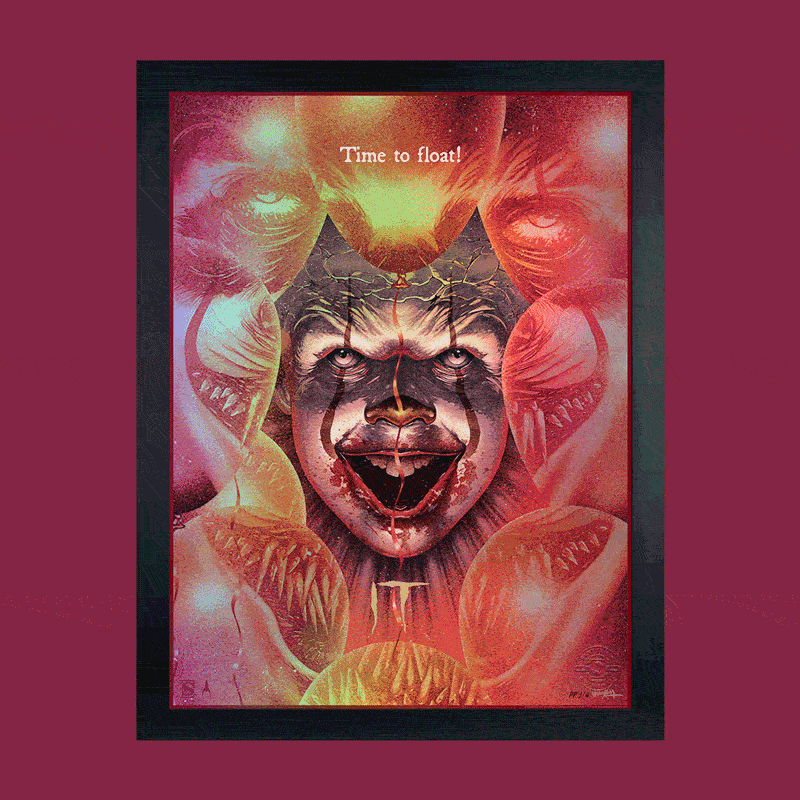 An original concept inspired by contemporary iterations of an iconic monster, this movie poster is printed on rainbow lava holofoil paper and available to fans as an unframed print or in a contemporary framed presentation. Each IT: Time to Float Losers Club Variant Art Print features an embossed Sideshow Seal of Authenticity as part of the limited edition of only 75 pieces.