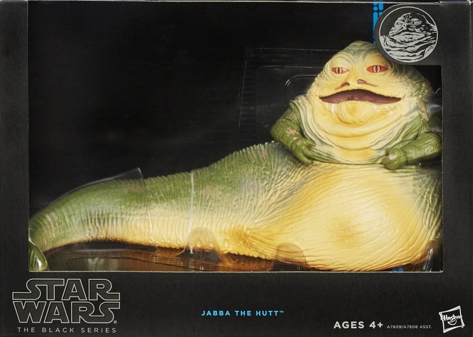 The Star Wars: Black Series 6-inch Jabba the Hutt figure features highly detailed sculpting and design to capture the look of this beloved Star Wars saga villain from the epic saga. Imagine Jabba the Hutt lying on his throne being entertained by dancers or gathering information from his spies. Move Jabba the Hutt’s arm up and down to make his mouth open and close as if Jabba is gobbling food as he plots his next crime.