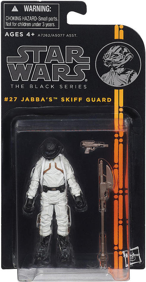 This skiff guard is a hunter who works for Jabba the Hutt. Skiff guards are usually mercenaries or slaves whose duties include defending the skiff from attack and keeping prisoners in line.