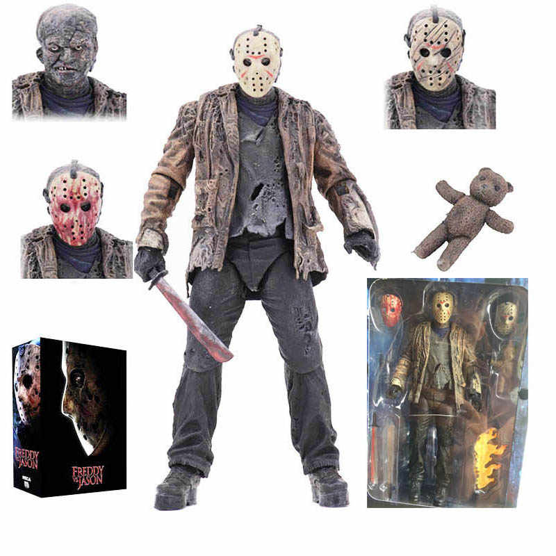 This new Jason figure is even more sizable than other Ultimate Jasons, as appropriate for a horror showdown on the movie’s scale. He comes with 3 removable masks, 2 machetes (regular and bloody), teddy bear, and fire effect that can attach to either machete to recreate the final blistering battle. Collector-friendly window box packaging with opening flap.