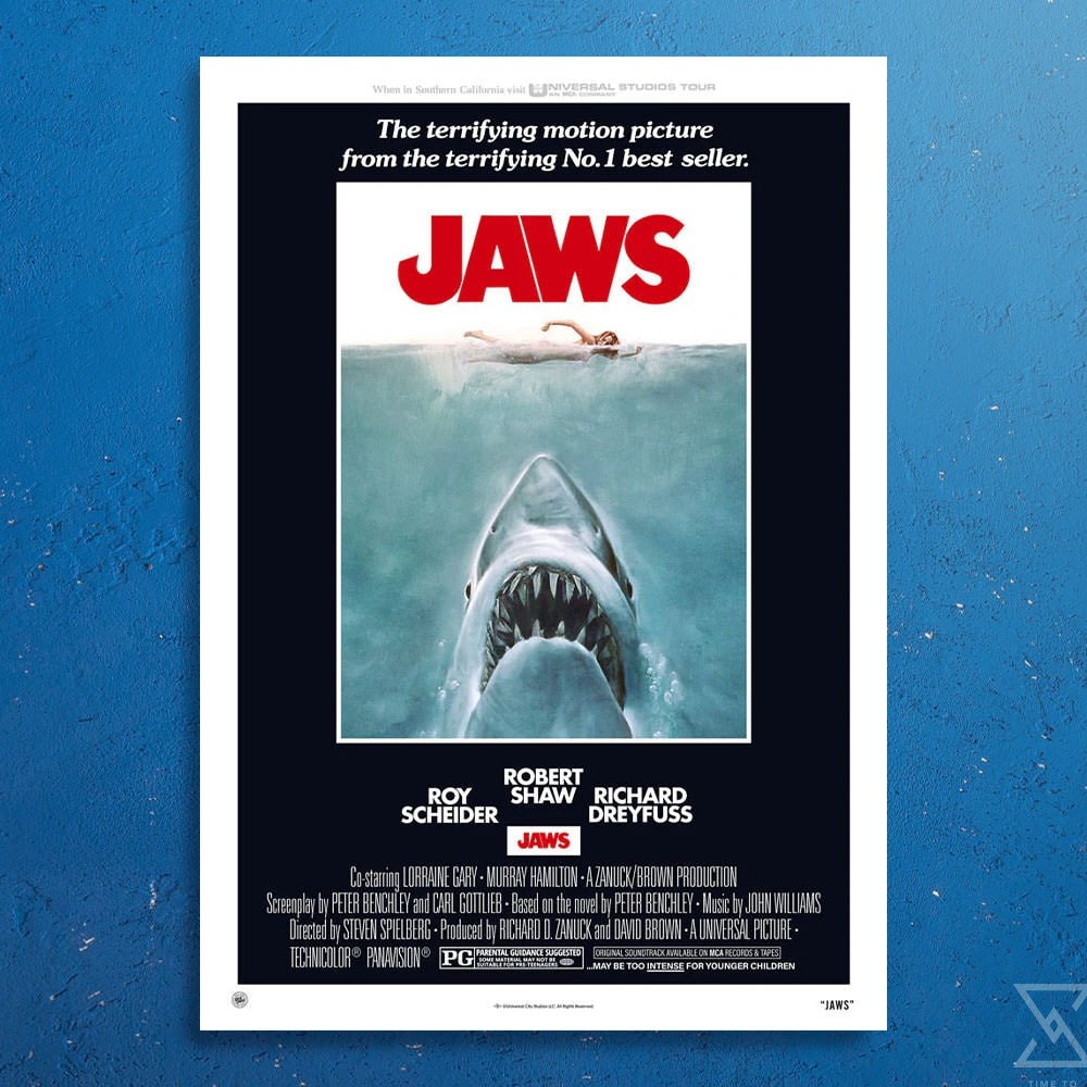 Get ready for fishing season and bring home the Jaws Movie Poster by Roger Kastel today!