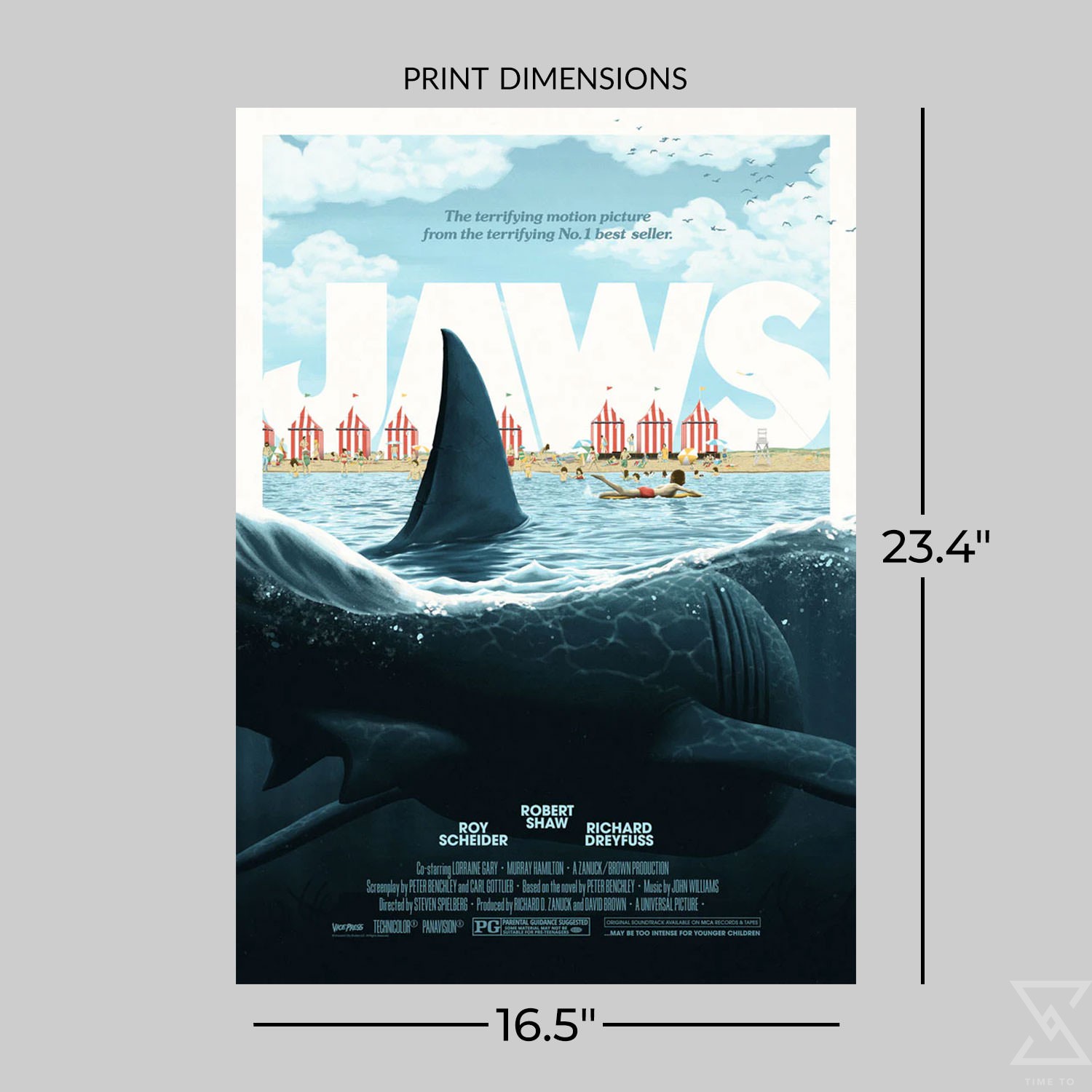 Flee while you still can… and bring home the Jaws Movie Poster by Florey today!