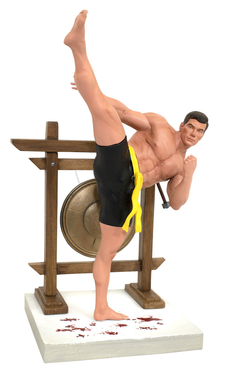 A Diamond Select Toys release! The Legend begins! Diamond Select Toys kicks off a new line of Jean Claude Van Damme collectibles with this Gallery Diorama of the Muscles from Brussels in one of his iconic, superhumanly balanced poses! Demonstrating one of his famous high kicks in front of a gong, the young JCVD stands approximately 10.5 inches tall and is made of high quality PVC. It comes packaged in a full color window box. Designed by Eamon ODonoghue, sculpted by Rocco Tartamella!