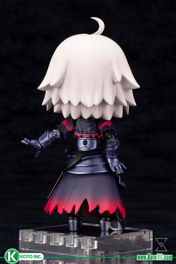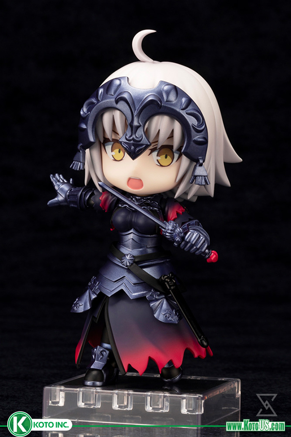 A Kotobukiya Japanese import! This is the howl of a soul filled with hatred! Le Grondement de la Haine! The latest addition to the adorable line of pocket sized Cu-poche action figures is the self-proclaimed dragon witch from the popular mobile RPG Fate Grand Order, Jeanne d’Arc [alter]! Cu-poche are pocket-sized action figures with non-scale proportions that give them a cute appearance. Despite their small stature, Cu-poche figures enjoy a wide range of movement, allowing them to be displayed in a variety of poses. Interchangeable face parts and magnets in the figure’s feet allow you to display it with a variety of poses and expressions. The figure’s sculpting is full of intricate detail, from the ragged hem of her skirt to the accents on her armor. The figure comes with two versions of Jeanne’s iconic flag, one where the flag is rolled up, and one where it is open. The figure also comes with two interchangeable face parts (default and shouting) to recreate a variety of memorable scenes and poses from the game!