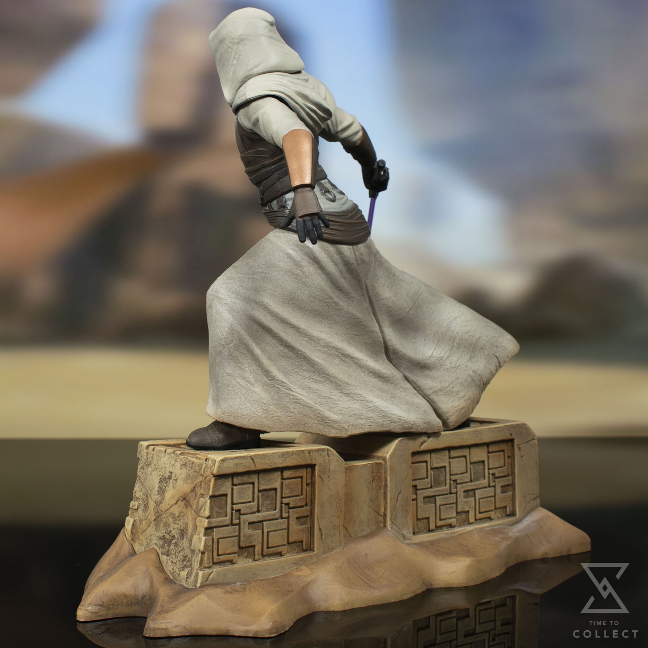 A Gentle Giant LTD release! Darth Revan returns from the Dark Side in this all-new Gallery PVC statue based on the Old Republic video game! Wearing his white robes and wielding a purple lightsaber, the Jedi Revan stands atop some ancient stone ruins and stands approximately 10 inches tall. Made of high-quality PVC, this statues features detailed sculpting and paint applications, and comes packaged in a full-color window box.