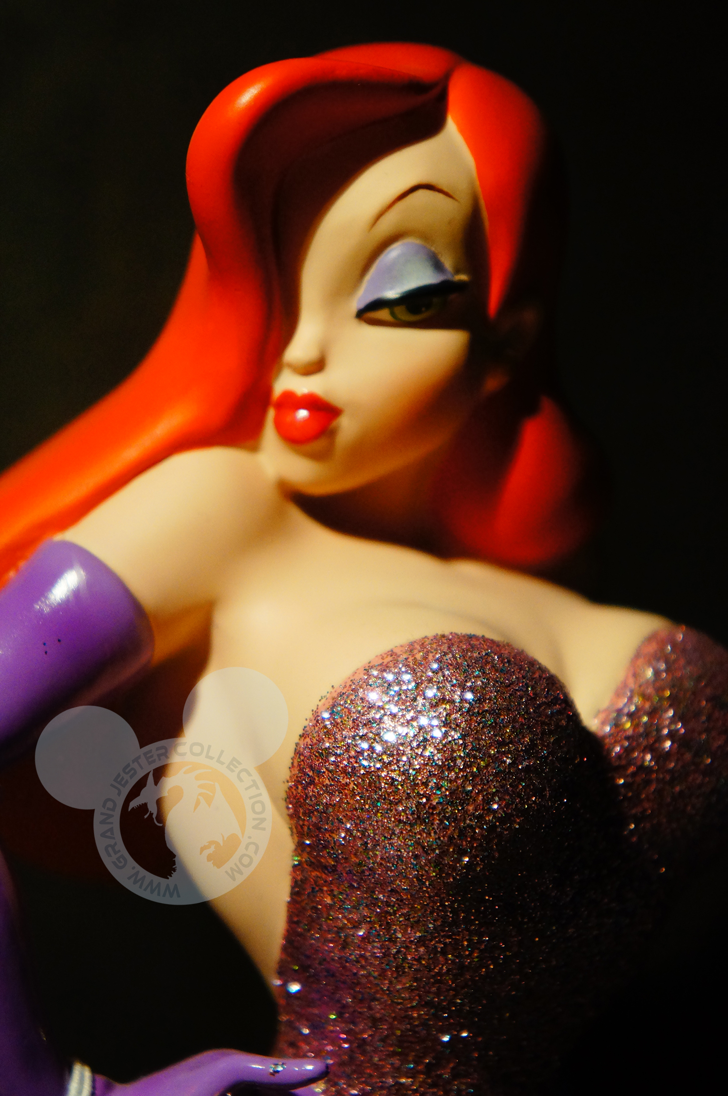 This exclusive Jessica Rabbit bust variant features a pink dress designed to dazzle the eye with a unique application of sparkling glitter and paint. Worn only on-stage in the landmark 1988 feature film, this version of Jessica in her glittering pink dress and available in a low limited edition of only 250 pieces is a guaranteed show-stopper sure to bring down the house!