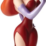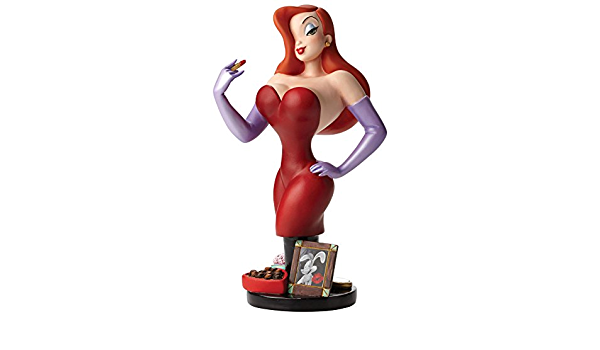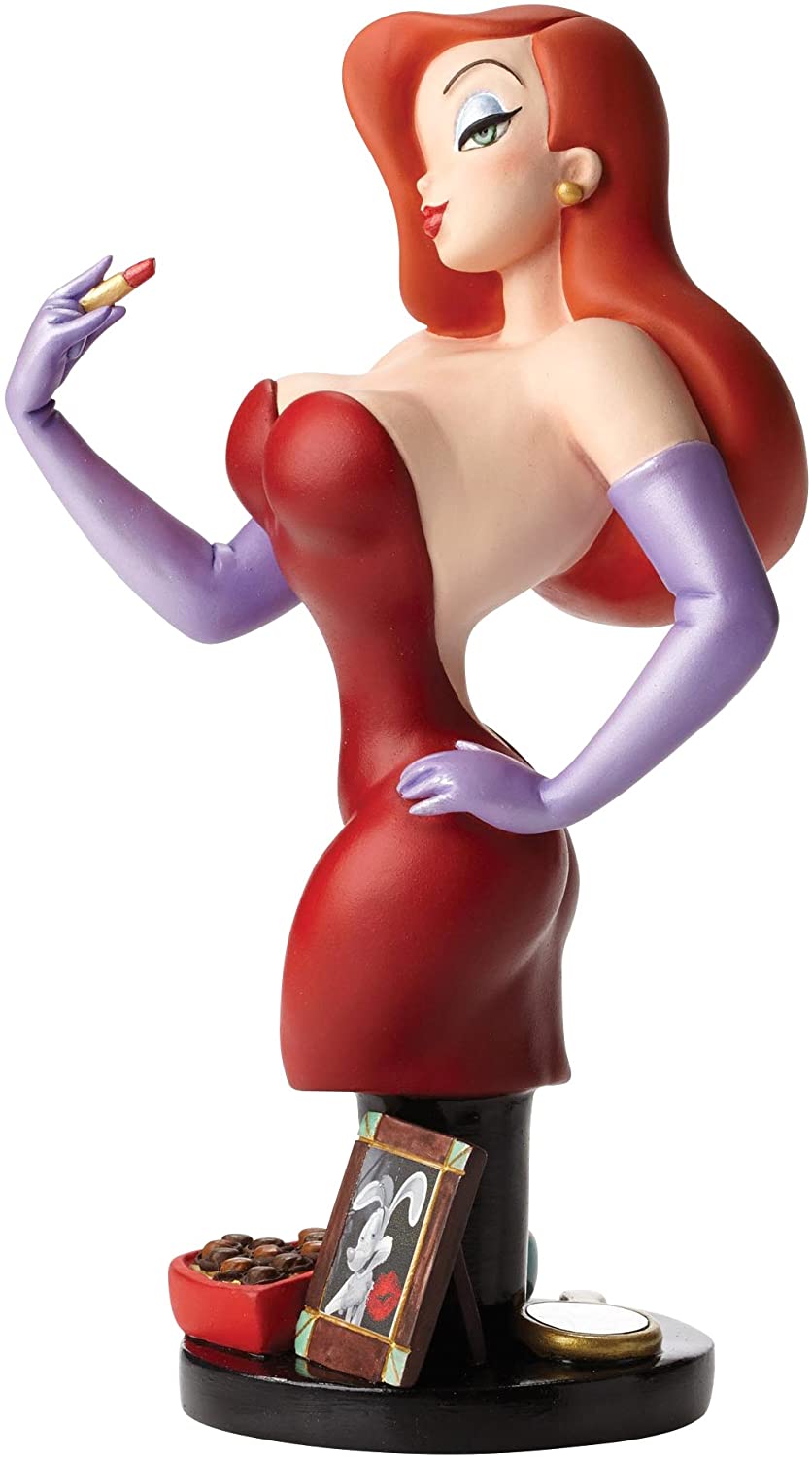 Voluptuous Jessica Rabbit freshens up her lipstick as the sultry songstress prepares to take the stage. The base is decorated with presents from her beau, Roger Rabbit.