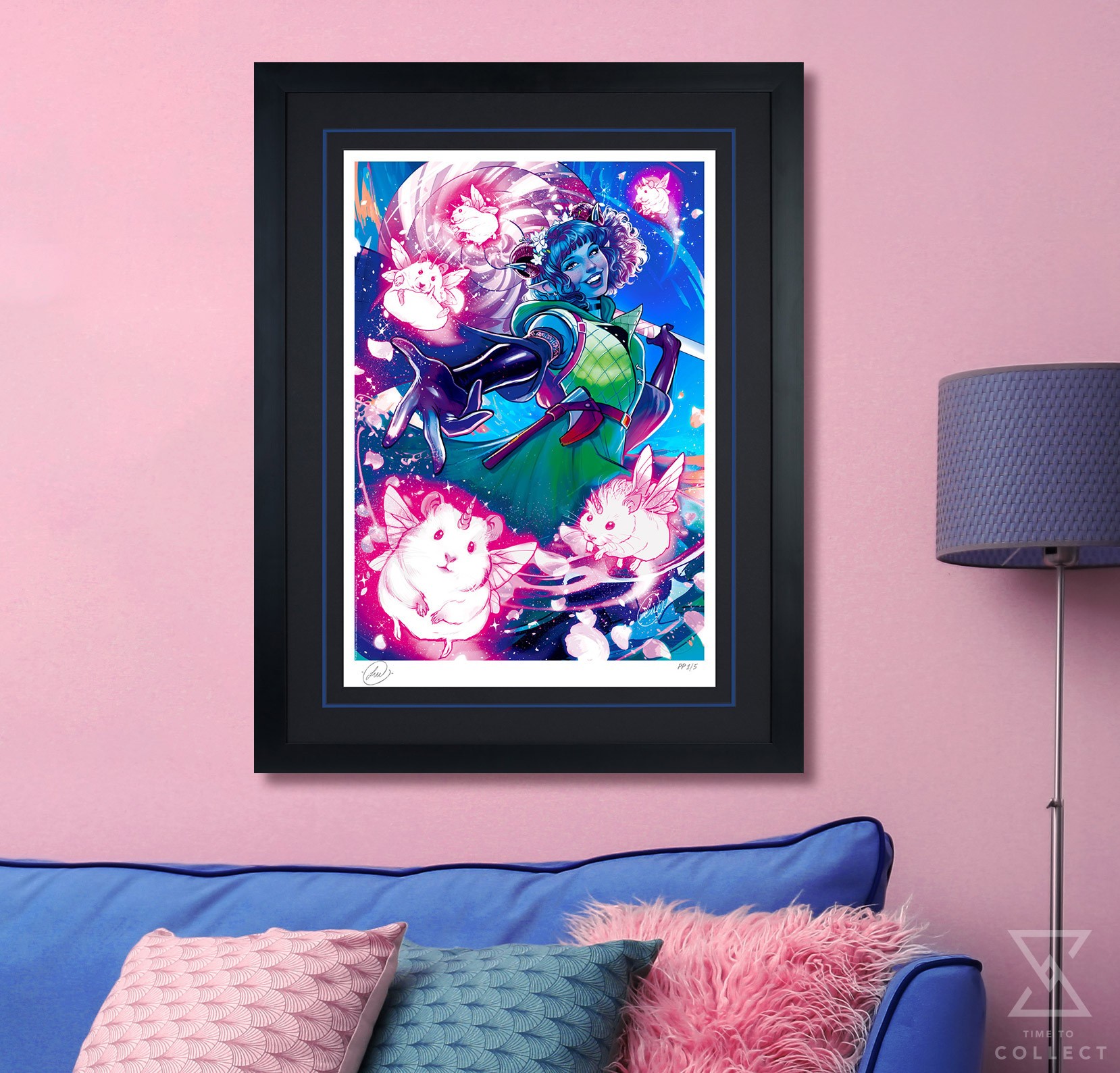 Technically, each Jester Lavorre: Heart of Chaos Fine Art Print features an authorized, automated artist signature and an embossed Sideshow Seal of Authenticity as a part of the officially licensed Critical Role collection. This Mighty Nein artwork is available as an unframed giclée print or in a custom framed presentation with a hand-picked double mat design to complement the illustration. Pair the print with the Jester Lavorre – Mighty Nein Statue, sold separately, for the perfect adventuring party — bring your own blueberry cupcakes!