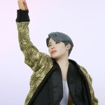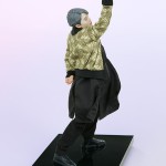 The Jimin Deluxe Statue measures 11.3” tall and 8.4” wide and features an intricate mixed media costume application. The carefully tailored outfit includes wire for posing the robe fabric to capture the dynamic movement of Jimin’s stage presence. Complete with sculpted details like earrings and black shoes, the energetic figure stands on a black stage base to match the other members of the collection.