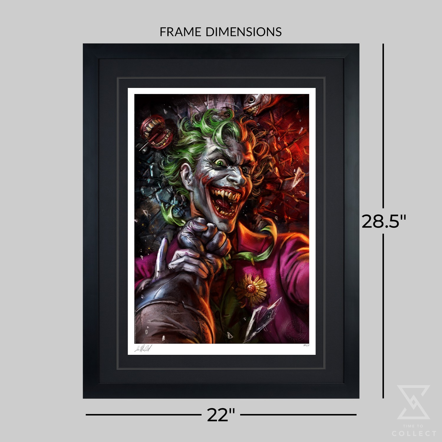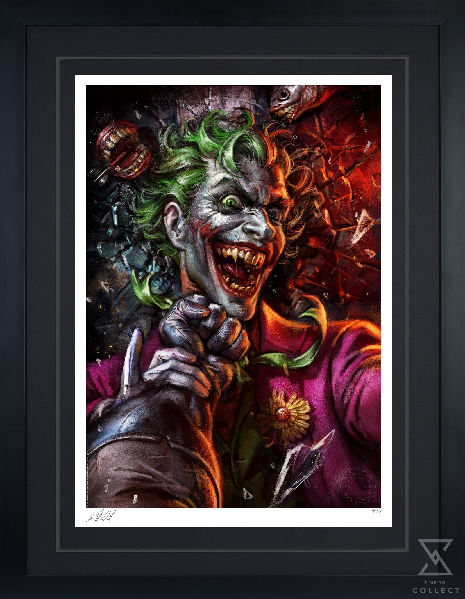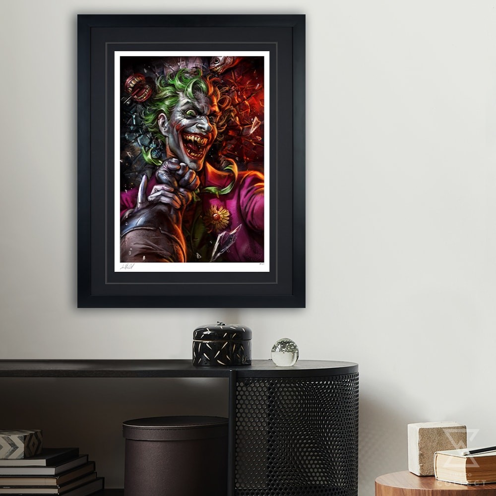 Inspired by The Joker and Batman’s comic appearances, this super hero art features an authorized, automated artist signature as well as an embossed Sideshow Seal of Authenticity as part of the limited edition of 300 pieces. Display it alongside the Batman vs Joker Fine Art Print by Ian MacDonald and the Batman vs Joker: Eternal Enemies Premium Format™ Figure — sold separately — to keep the fight between these two longtime rivals going forever.
