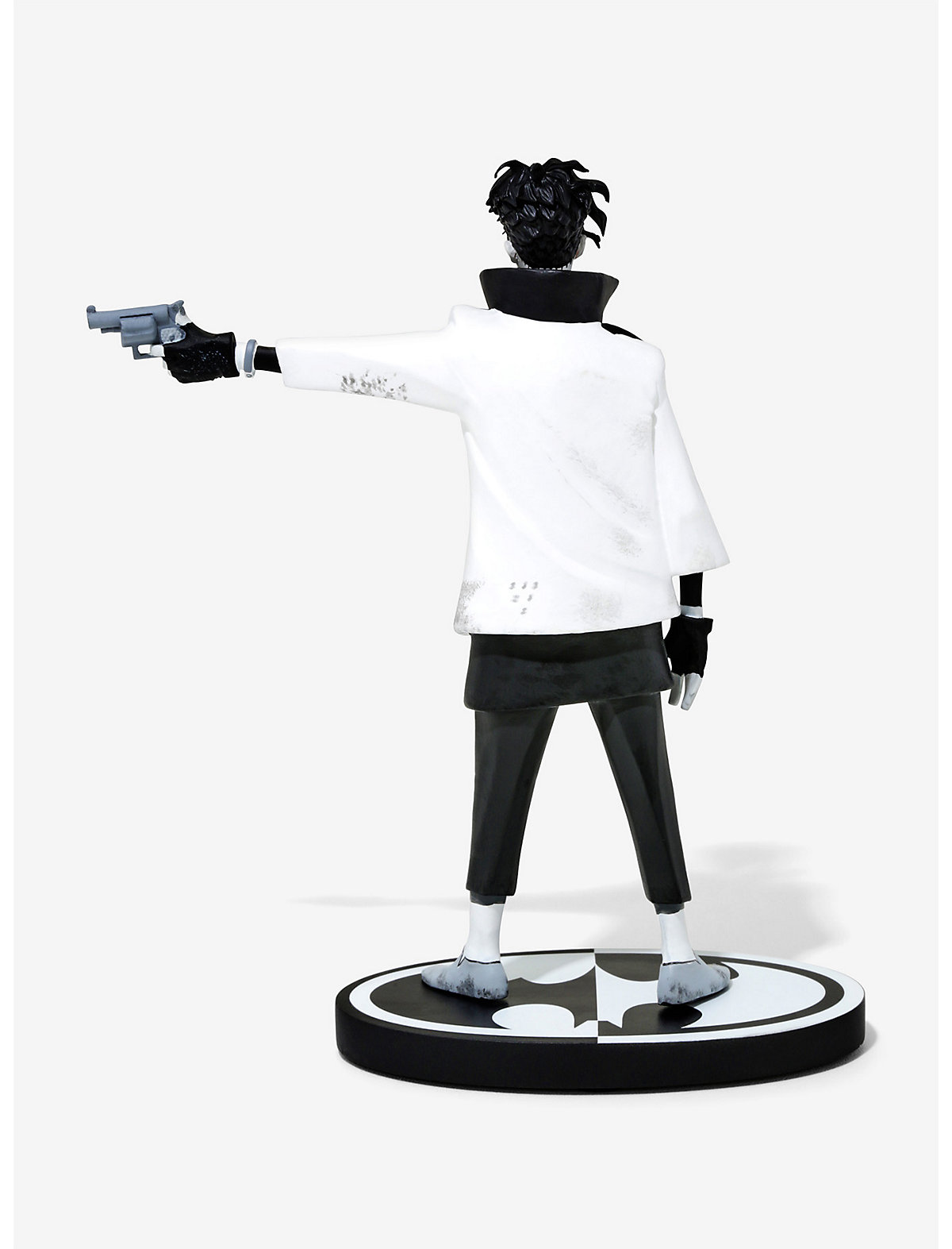 Designed by the acclaimed comics creator and pop-culture raconteur Gerard Way comes this perfectly creepy Arkham Asylum escapee, the Joker. With a new punk rock look, the clown prince of crime has been painstakingly brought to three dimensions by master sculptor Jonathan Mathews. This limited edition statue includes the numbered trademark Batman Black & White symbol base.
